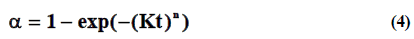 Where α is reached fraction, n is the Avrami exponent, K is the temperature-dependent rate constant.