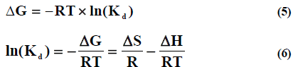 Where Kd is the adsorbate distribution coefficient;T is the temperature (K) and R is the universal gas constant (8.314×10-3 kJ/ (K mol)). Free energy ΔG0298.15 of copper (II) and cobalt (II) ions adsorption on different adsorbent changes correspondingly in the range of - 19.81 up to -26.85 by applying sewagemodel[24].